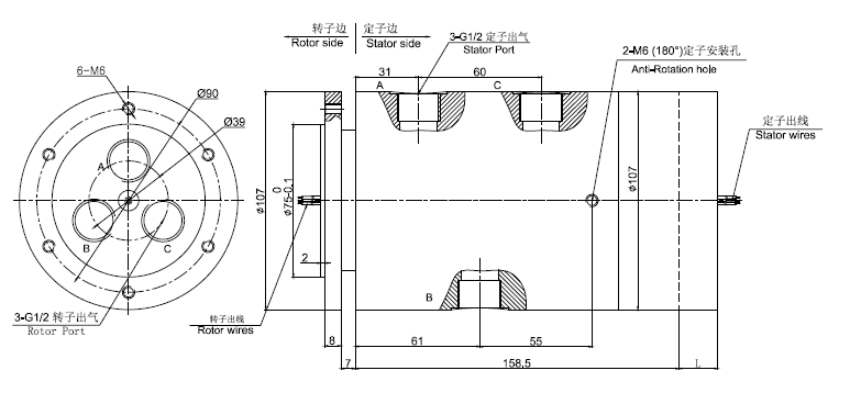 · 360度旋轉(zhuǎn)同時傳輸氣體,液體,電源功率信號等介質(zhì)