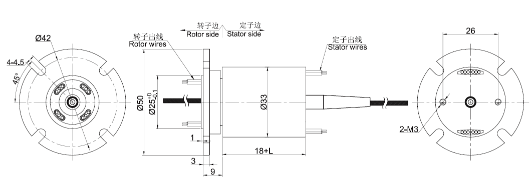 堅(jiān)固的滑環(huán)主體允許光纖接頭ST或者FC接頭在轉(zhuǎn)子一側(cè)或在定子一側(cè)。
