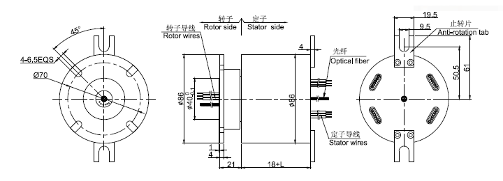 堅固的滑環(huán)主體允許光纖接頭ST或者FC接頭在轉(zhuǎn)子一側(cè)或在定子一側(cè)。