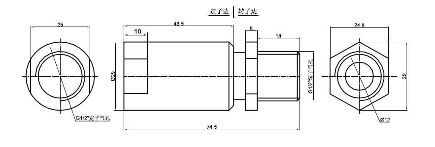 所有MK單通道系列旋轉接頭均標配陽螺紋軸和陰螺紋外殼,便于安裝。