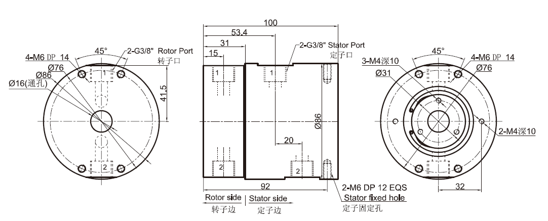 | 工作壽命 | >1000萬轉(zhuǎn) | 最大壓力 | 1MPa (可定制高壓),真空 0.01torr |