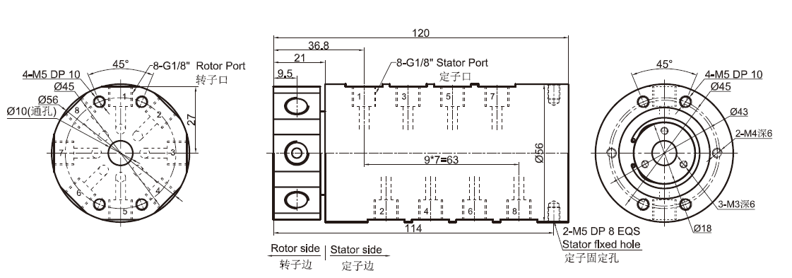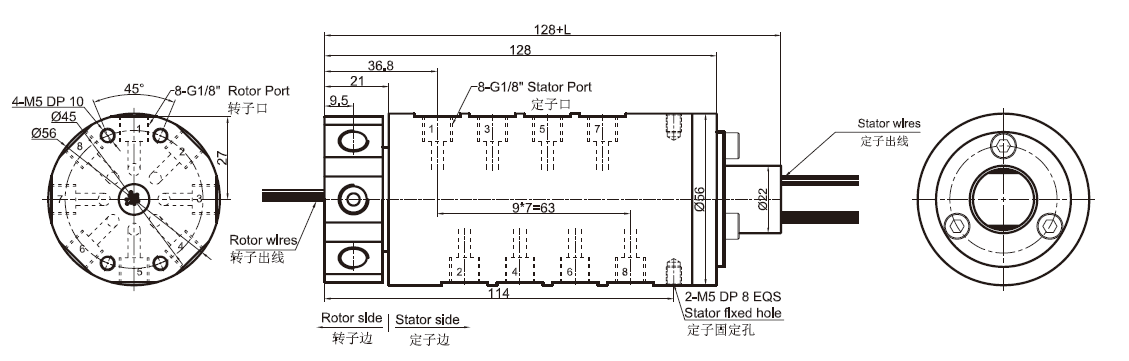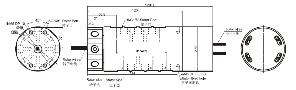 DK81系列是8通道氣動(dòng)旋轉(zhuǎn)接頭(可混合電) G1/8"牙,體積小,重量輕,轉(zhuǎn)動(dòng)扭矩小