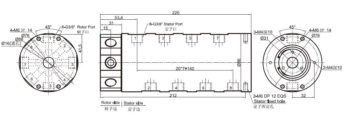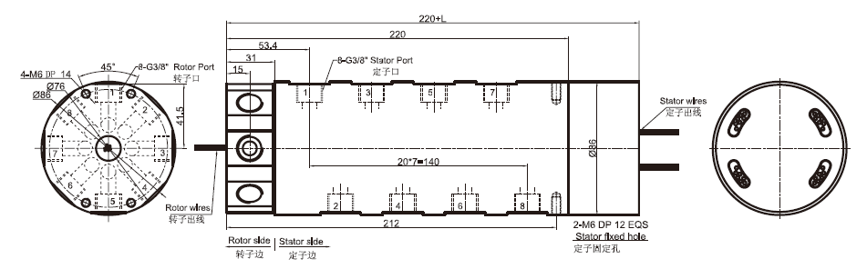 | 工作壽命 | >1000萬(wàn)轉(zhuǎn) | 最大壓力 | 1MPa (可定制高壓),真空 0.01torr |