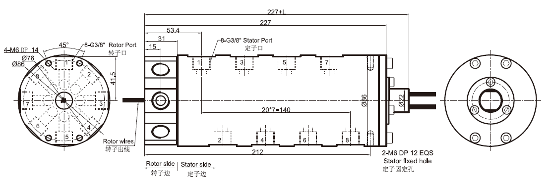DK83(純氣動(dòng)旋轉(zhuǎn)接頭) 尺寸圖 8進(jìn)8出G3/8"牙