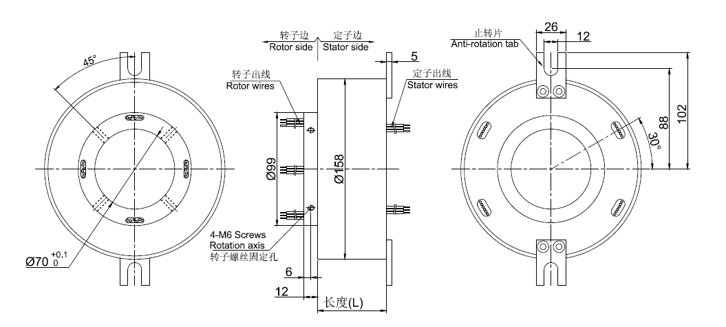 DT70158系列是一款孔徑70mm,外徑158mm,整體式精密導(dǎo)電滑環(huán),主要應(yīng)用于
